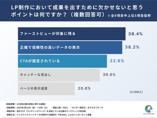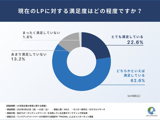 今回、株式会社リンクアンドパートナーズは、自社でLP(ランディングページ)を活用している企業の担当者の方500名を対象に、「LP活用企業の実態に関する調査」を実施しました。