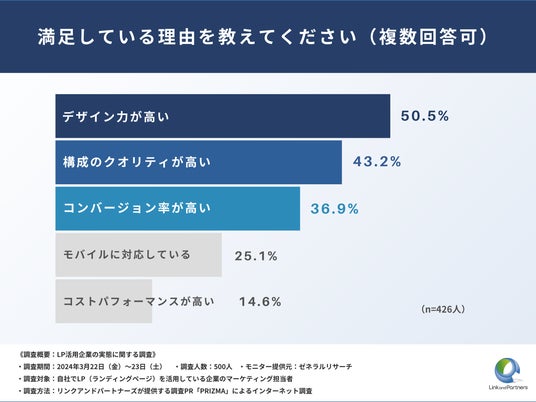 ・満足している理由は、デザイン力と構成クオリティ、そして高コンバージョン率と続く