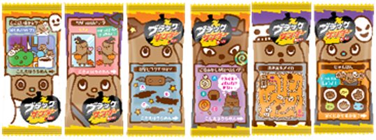 パッケージには、幅広い年齢層の方に好感をもっていただけるブラックサンダーをモチーフにしたキャラクターを今年も採用。ハロウィンをお楽しみいただけるよう6種類のゲーム付き個包装をご用意しました。また、個包装にも賞味期限印字がついており、ハロウィンギフトなどにもご活用いただけます。