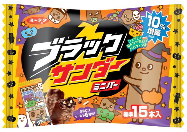 今年もデザイン等を改良しパワーアップした「ブラックサンダーミニバーハロウィン」で、手軽で楽しいハロウィンをお過ごしください♪