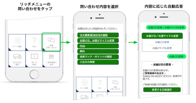 2)定期購買の解約・変更等の問い合わせ対応業務を自動化