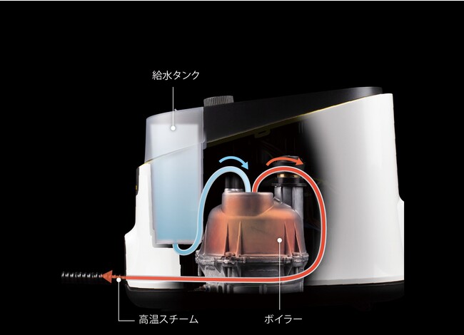 加熱するボイラーと給水タンクが分かれているので、ボイラータイプなのに水を継ぎ足せば中断せず使えます。タンクは取り外し可能で給水も簡単