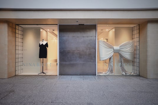 店頭はクリーム色のリボンでデコレーションされ、「ニナ リッチ」の世界観をたっぷり堪能いただける空間になっています。ハリス・リードの遊び心あふれるドラマチックなコレクションをぜひお手に取ってお楽しみください。