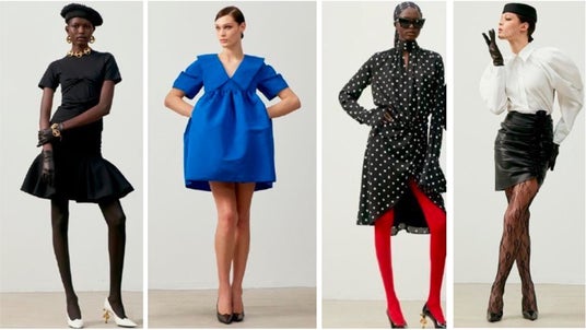 左から/ドレス ¥242,000 / ドレス ¥242,000 / シャツ ¥159,500、スカート ¥121,000 / ドレス ¥217,8000