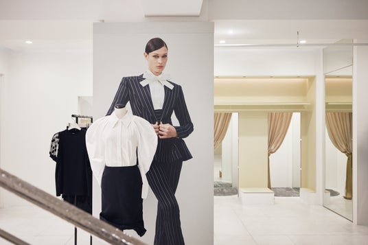 本ポップアップイベントでは、ニナ リッチのアーカイブやクチュールの要素を取り入れたドレスやテーラリングなどを含む日常着をご紹介。カラーパレットはタイムレスなブラック&ホワイトをはじめ、フューシャピンクやブルーの鮮やかな色と、ネイビーやパープル、オックスブラッドといった深みのある色のミックスで、パリジャンらしい洗練された印象にまとまっています。