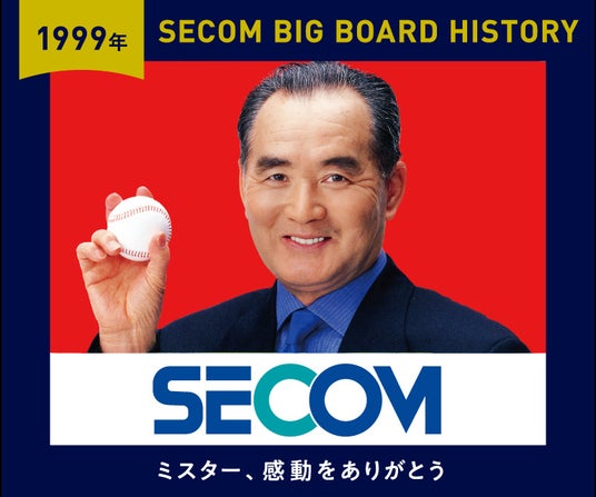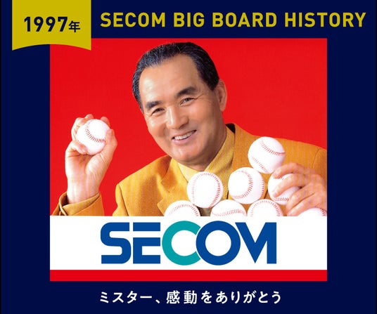 今回、長嶋さんのご逝去に対する哀悼の意と、これまでのご出演への感謝の気持ちを表し、1994年から2025年に掲出した20種類を超えるデザインの中から15種類を掲出。各試合の表と裏で2種類が日替わりで登場します。広告には「SECOM BIG BOARD HISTORY」と題して、掲出されていた年とともに「ミスター、感動をありがとう」とメッセージを添えています。