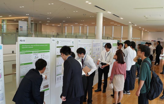 ▲会場で展示した抗炎症のメカニズムを説明したパネル