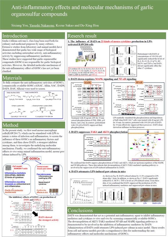 自社でにんにくの有機栽培を行い、それを原料にした滋養食品を販売している株式会社健康家族(本社:鹿児島県鹿児島市平之町、代表取締役:藤 朋子)は、にんにくの有機農家として、にんにくに秘められた健康パワーの解明研究にも力を入れている。この度、鹿児島大学で開催された「第5回Food for Health International Conference & Life Science Symposium」にて、にんにくの抗炎症作用に関する研究成果のポスター発表を行った。本研究は、にんにくに含まれる特定の成分が体内の炎症を抑制するメカニズムを明らかにするもので、参加した国内外の研究者から高い関心を集めた。