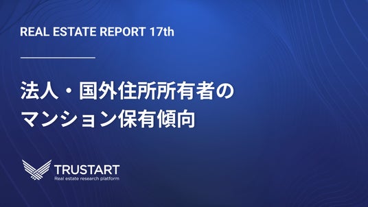 AI×不動産ビッグデータで不動産関連業務のDXを伴走支援するプラットフォーム「R.E.DATA (リデータ)」を開発・提供するTRUSTART株式会社(本社:東京都中央区、代表取締役:大江洋治郎、読み:トラスタート、以下「TRUSTART」)は、マンション等の区分建物における法人および国外住所所有者の保有実態を分析した不動産ビッグデータ分析レポートを公開しました。