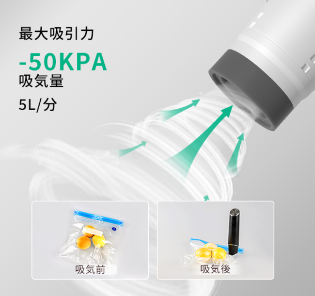 ・-50kPaの高吸引力で食品の鮮度をしっかり保存