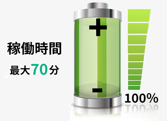「Pompa」は1200mAhの大容量バッテリーを内蔵しており、1回の充電で最大約70分間稼働します。