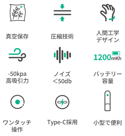 「Pompa」の最大吸引力は-50Kpaで、真空パックに要する時間はわずか数十秒。真空袋内の空気を完全に抜くことで、酸化を防ぐことができます。