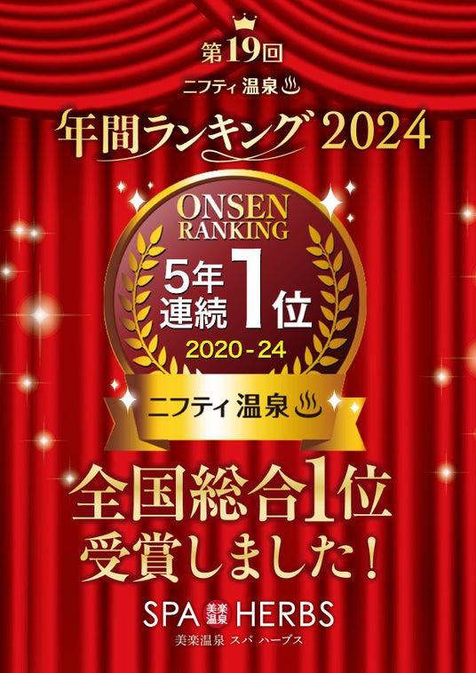 株式会社BEST HERBS(代表取締役社長 塚田正之:東京都新宿区市谷仲之町3-5)が運営する SPA-HERBS(https://spaherbs.jp)がニフティ温泉年間ランキング2024にて全国総合ランキング1位など7冠を獲得いたしました。