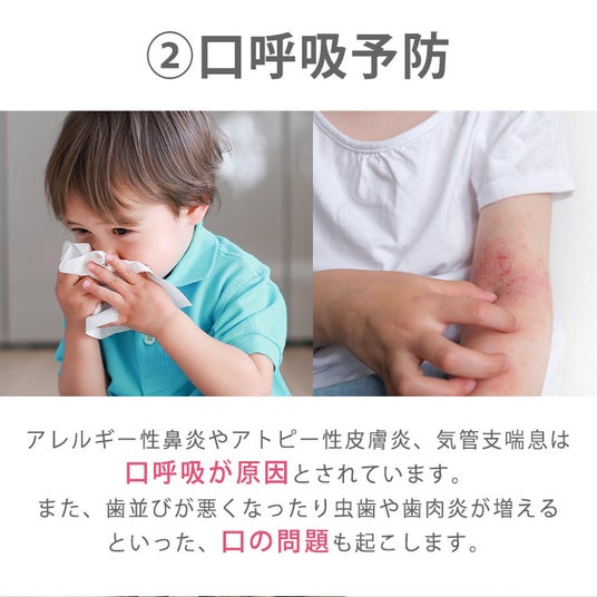 アレルギー性鼻炎やアトピー性皮膚炎、気管支喘息は口呼吸が原因とされています。