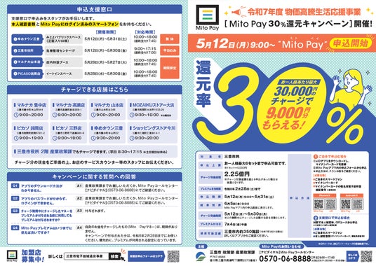 この度、香川県三豊市では物価高騰の影響を受けた市民を支援し、地域経済の活性化を図るため、「Mito Pay30%還元キャンペーン」を実施いたします。本キャンペーンは事前申し込み制であり、申込総額が発行上限を超えた場合は抽選となります。
