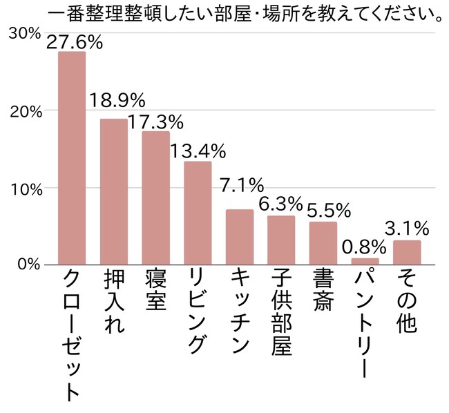 アンケートでは次に、一番整理整頓したい部屋・場所を尋ねました。