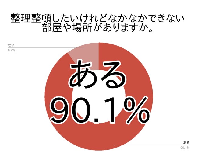 整理整頓したいのにできていない部屋・場所がある方は約9割