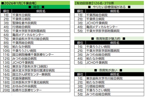【千葉会場】では1位に千葉市立病院、2位に千葉県立病院と、ともに公立病院がトップ2を獲得。