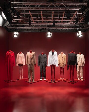 世界のどこに住んでいても、だれもがアンボクシング ヴァレンティノ コレクションをご自身の目でご覧いただけるよう、9つ目のウィンドウはオンラインで行われます。スタイリスト、アレキサンドラ・グランクヴィスト氏とマッケンジー・レイ・グランクヴィスト氏が制作するこのデジタルディスプレイは、ヴァレンティノのもっとも純粋なエッセンスを表現し、創設当初を思い起こさせる情熱的なレッドを背景に、三角形の高いプラットフォームにマネキンが吊るされています。