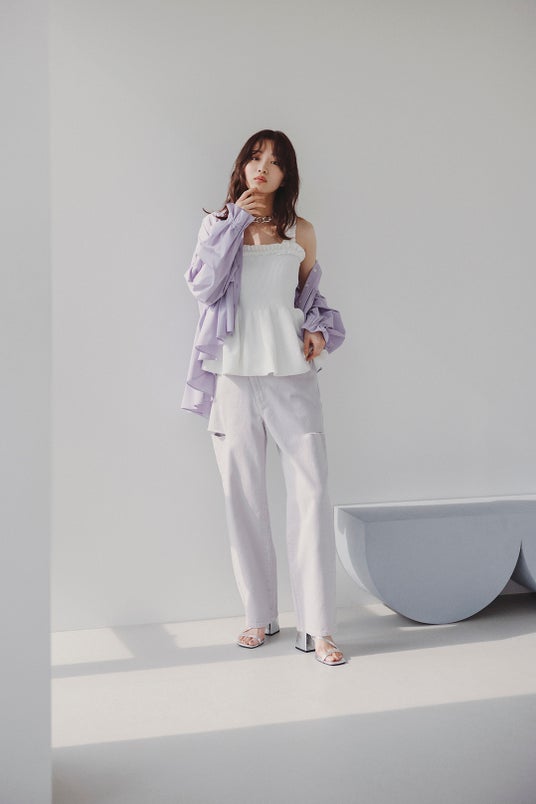 今年らしいカラーボトムスにペプラムトップスで糖度を+