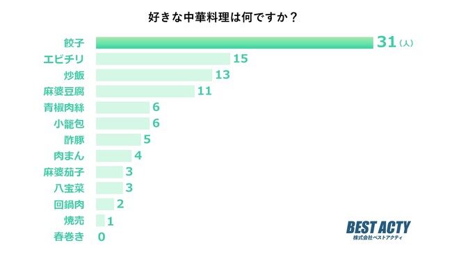 アンケートの結果、「餃子」と答える人が最も多い結果となりました。