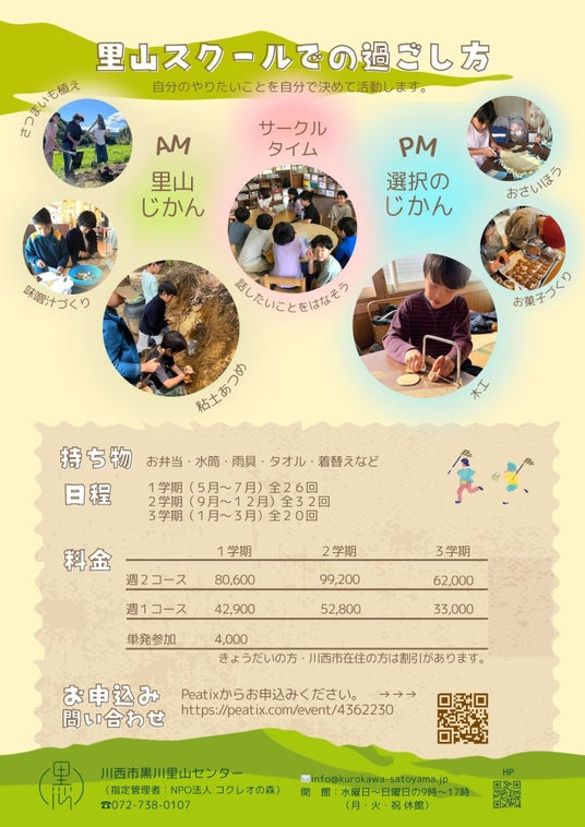黒川里山センター(兵庫県川西市黒川)で水曜日と木曜日に実施している、小中学生のための居場所です。
