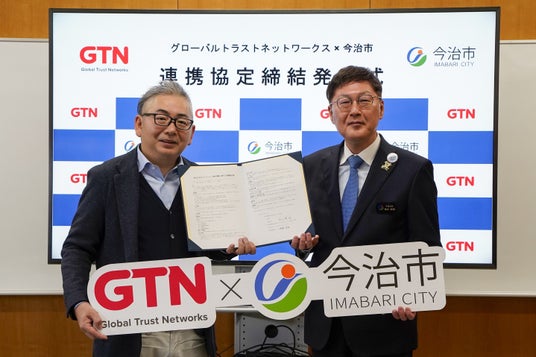 2026年1月26日には、今治市役所で「多文化共生プロジェクト実証実験に関する連携協定締結発表式」が開催されました。式典では、GTNの後藤裕幸代表取締役社長と徳永繁樹今治市長が協定書に署名し、新たに始まる多文化共生社会の実現に向けた取り組みについて抱負を語りました。