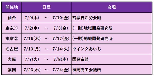 会場コースでは、全国5都市で開催いたします。「Webコース」は配信後に視聴可能となり、自由に中断・再開が可能です。