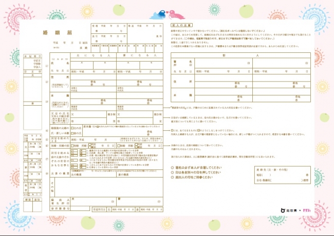 カラフルで素敵な婚姻届ができました。この婚姻届で結ばれた皆さんに、彩りのある結婚生活が待っていることを願っています。(鳥取県福祉保健部子育て王国推進局子育て応援課 山本 要氏)