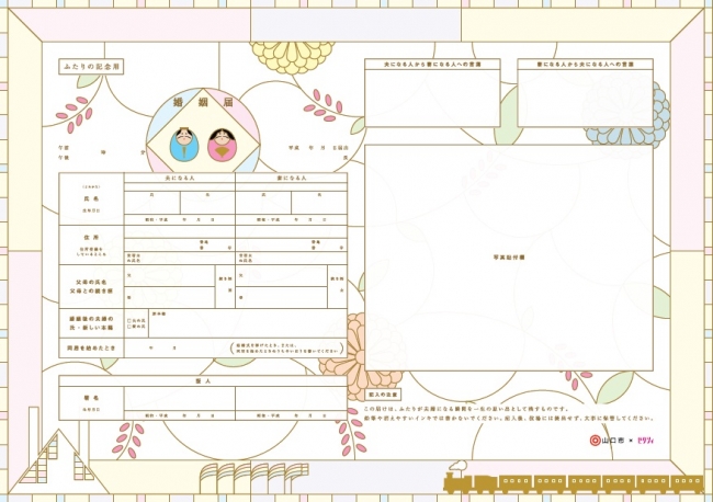 2014年7月にご当地婚姻届のダウンロードサービスを開始し、多くのカップルにご好評いただいている「まちキュン・ご当地婚姻届」。今回は山口市、鳥取県、大分県とコラボレーションし、オリジナルご当地婚姻届のダウンロードサービスをスタートします。山口市では、2014年12月に山口県が参画。みなさまからの好評を得て、山口市としても参画が決定いたしました。*ご当地婚姻届は全国どの役所でも提出できる正式な書面です。