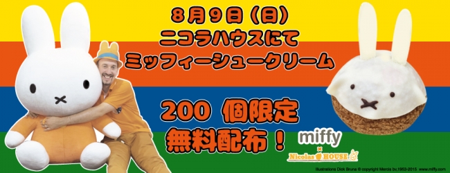 日本初ミッフィーコラボカフェを開催中のニコラハウスが、8月9日(日曜日)12時から、ミッフィーコラボで実現した、ミッフィーのシュークリームを200名に無料配布するイベントを開催決定!!