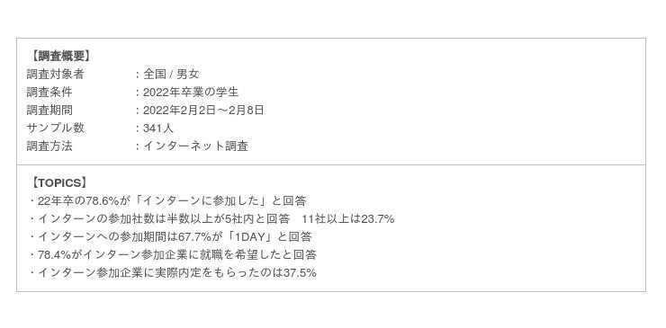※詳細は別紙の「22年卒 インターン実態調査 報告書」をご参照ください(※2)