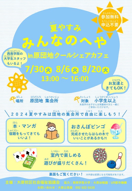 ◆夏やすみ みんなのへやin原団地クールシェアカフェ