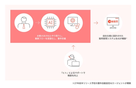 今回の機能搭載により、お客さまにとっての理想の業務フローを、AIとの対話を通じて迅速かつ的確にシステムに反映できるようになります。さらに、AIによるアウトプットを基に、ラクスのカスタマーサクセス担当者がサポートする「AI×ヒト」の体制によりシステム導入の経験や知識がない方でも、自社仕様に設計された販売管理システムを安心してすぐに使い始めることができます。