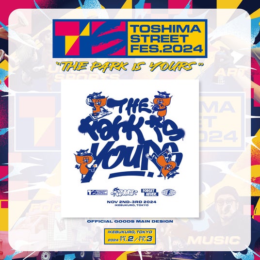 「TOSHIMA STREET FES 2024」の公式キャラクターとして誕生したTEDDYをデザインした限定グッズが登場。今年のテーマ"THE PARK IS YOURS"とTEDDYがプリントされたTシャツやフーディーを含む豊富なアイテムがラインナップされています。