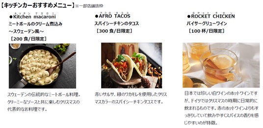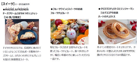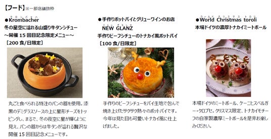 メイン会場内には過去最多58店舗の飲食・物販ブースが集結。また、入場無料のイルミネーションガーデンには世界各国で親しまれているクリスマスメニューを提供するキッチンカーが6店舗登場します。