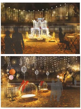 イルミネーションガーデンの今年のテーマは「Celebration Party」。 開催15回目をお祝いする“小さな森のパーティー会場”と題して、木々を活かした温かみのあるイルミネーションを装飾。フォトスポットにもなるケーキ型のオブジェをはじめ、バルーンをイメージした装飾などのイルミネーションでパーティーを華やかに演出します。また、「Memorial」な年をお祝いする場として、会場には世界各国で親しまれているクリスマスメニューを提供するキッチンカーが6店舗出店。加えて、会場では日にち限定でDJイベントも開催。会期中何度訪れてもお楽しみいただけるようなコンテンツをお届けします。