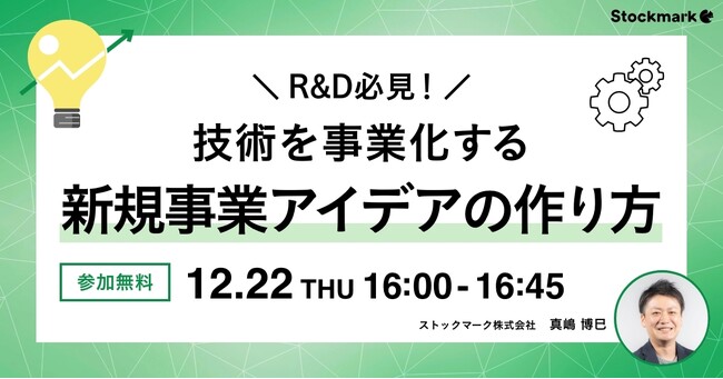 最先端の自然言語処理AIを活用した情報収集サービス『Anews・Astrategy』を提供するストックマーク株式会社(以下、「当社」)はオンラインセミナー『R&D必見!技術を事業化する新規事業アイデアの作り方』を12月22日(木)に開催致します。