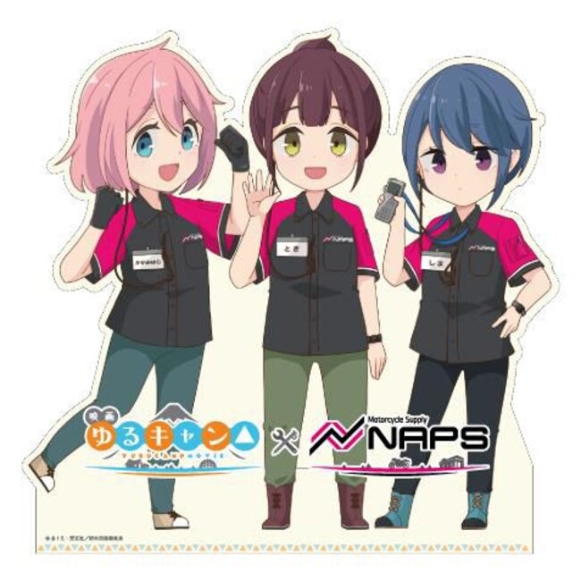 ナップス全店に映画『ゆるキャン△』登場キャラクター 各務原なでしこ、志摩リン、土岐綾乃のスタンディパネルを配置、写真がとれるフォトスポットを展開します。