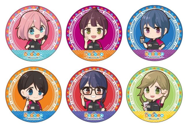 ナップスのスタッフユニフォーム姿の登場人物ステッカー(直径10cm 税込880円)を全店で販売いたします。