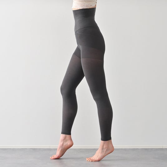 ガードルのようなサポート力を持つ一般医療機器の段階着圧レギンスでありながら、オーガニックコットンを使用したやさしい風合いと使い心地を実現。
