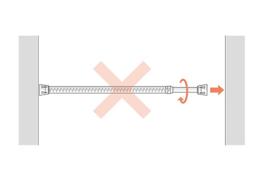 突っ張り棒を設置する際、壁の間で「くるくると回して」長さを伸ばし、そのまま固定していませんか? 実はこれ、従来のバネ式突っ張り棒においては間違った使い方です。
