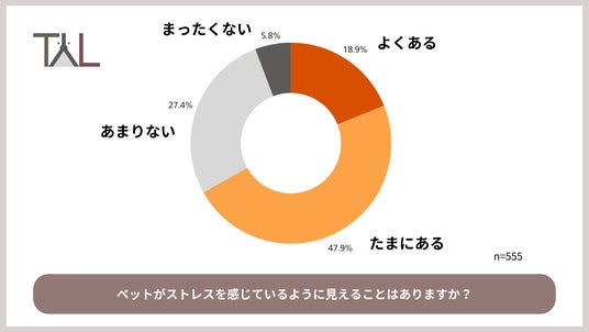 ・約7割が「ストレスを感じているように見える」と回答し、体調への影響も飼い主の3人に1人が経験。ストレスがペットの健康課題に