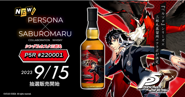 若鶴酒造株式会社(所在地:富山県砺波市三郎丸 代表者:稲垣貴彦)は、株式会社アトラスが手掛ける人気のジュ ブナイル RPG『ペルソナ』シリーズとコラボレーションしたウイスキーを発売いたします。 9 月 15 日(金)のリリース第三弾では『ペルソナ5 ザ・ロイヤル』をモチーフにした「シングルカスク三郎丸 P5R #220001」を特設ページより抽選受付開始いたします。