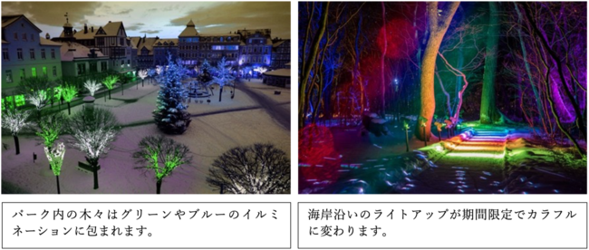 当施設の園内やビーチ沿いに、日本初上陸となるアニマルのイルミネーションや、カラフルなライトアップ、SENNAN LONG PARKオリジナルのイルミネーションオブジェクトなど、“ここでしか見られない”を詰め込んだ光の公園をつくります。