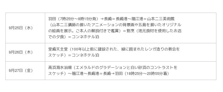 キリシタン文化の残る教会やエメラルドビーチなど、神秘的で雄大な風景を描きましょう。ご希望の方は山本二三氏からアドバイスがもらえます。絵の技術は問いません。のんびり散策したり、山本二三氏が描いているところを眺めるだけでもOKです。また、昨年オープンした「山本二三美術館」を山本二三氏がご案内いたします。