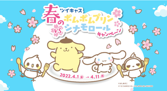 ツイキャスでは昨年「サンリオキャラクター大賞コラボキャンペーン」を実施。上位に選ばれた4キャラクターが一年間配信で使えるアイテムとしてツイキャスのユーザーに親しまれてきました。今回はその上位4キャラクターに惜しくも選ばれなかった「ポムポムプリン」と「シナモロール」がツイキャス上でアイテム化をかけて対決します。