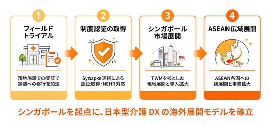 TWM社を核とした現地の営業・導入・運用体制のもと、シンガポール国内での導入実績を積み上げ、「日本型介護DXの海外成功モデル」を構築します。