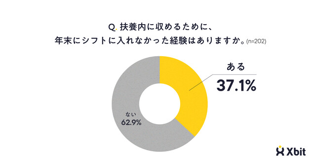 扶養内に収めるために年末にシフトに入れなかった経験はあるか尋ねたところ、37.1%が「ある」と回答しました(n=202)。