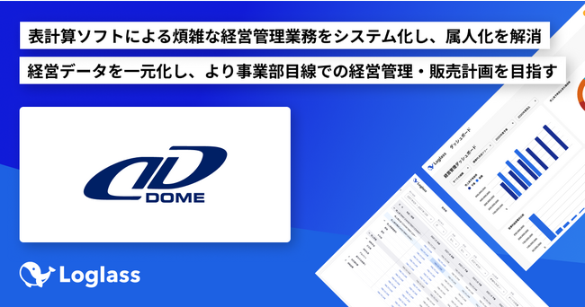 株式会社ログラス(本社:東京都港区、代表取締役CEO:布川友也、以下「当社」)は、株式会社ドーム(本社:東京都江東区、代表取締役CEO:北島 義典、以下ドーム)が経営管理クラウド「Loglass 経営管理」を導入したことをお知らせいたします。